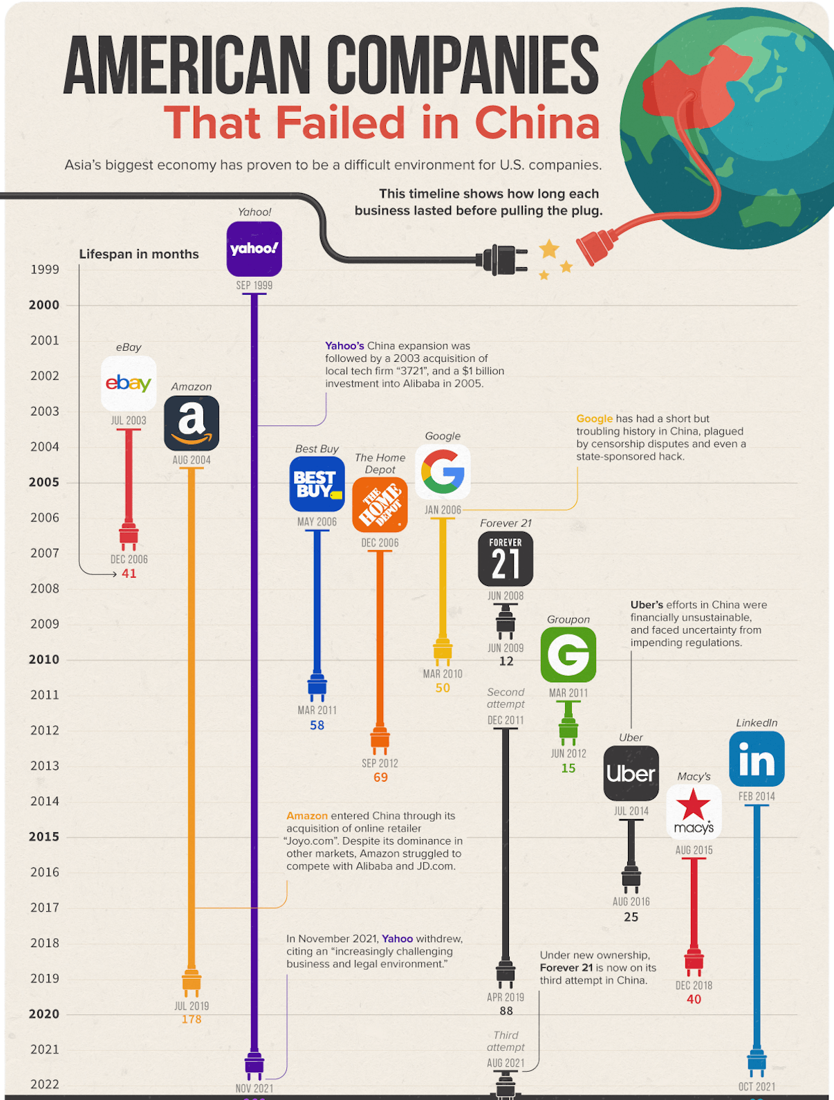 In 2014, LinkedIn launched in China. It aimed to become China's ultimate professional networking site. In 2021, LinkedIn ceased its core service. For eight years, LinkedIn in China had never reached the same success it had in U.S.