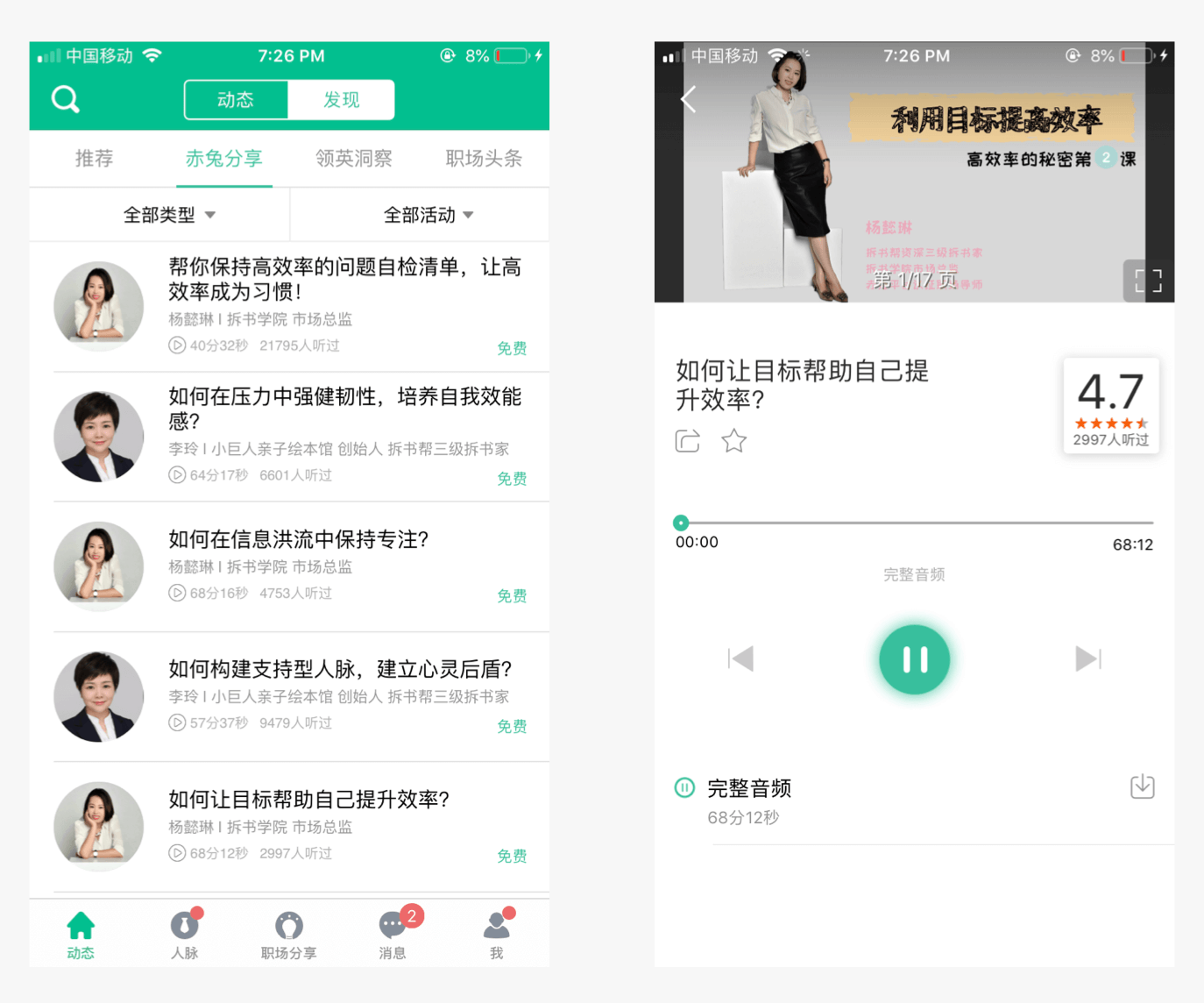Chitu inherited many LinkedIn's features and added new ones, such as offline networking events and knowledge broadcasting.